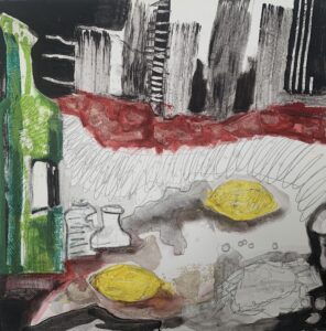 Carmen Grau, Zitronen 2021 acryl-sand auf Leinwand 50×50 300,-€ (3)
